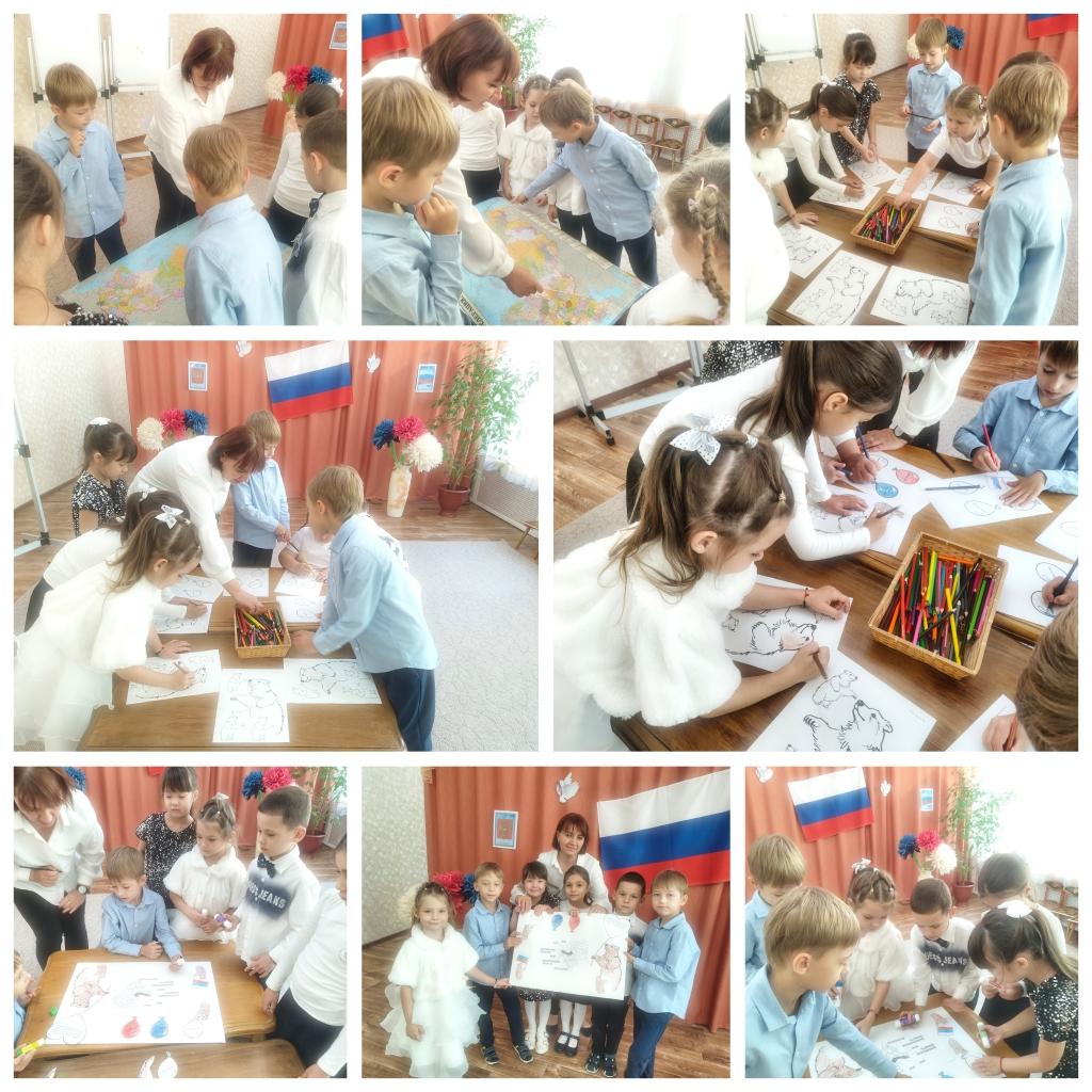 Ребята создавали коллективную работу — плакаты «Мы вместе!», «Одна страна - одна Россия!», пели гимн Российской Федерации, песню о России.