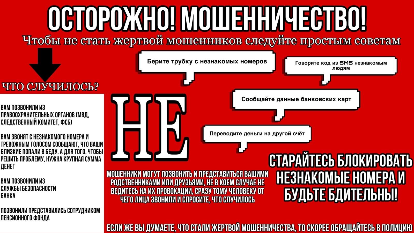 Чтобы не оказаться жертвой мошенников необходимо знать следующее: